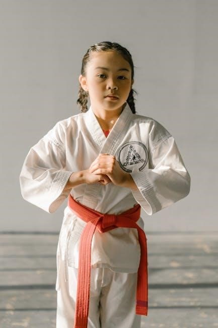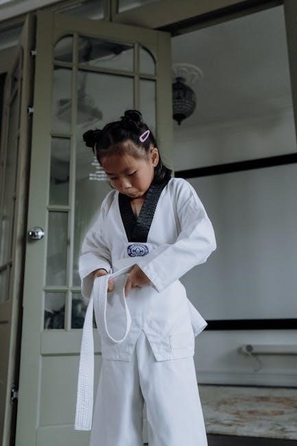 The belt is a crucial component of a karate uniform, symbolizing rank and achievement. Belts are typically made from durable materials like cotton or polyester, ensuring longevity through frequent use. The width and thickness of the belt vary slightly depending on the manufacturer, but standard widths range between 1.5 to 2 inches. The length of the belt is determined by the practitioner’s height and waist size, with most belts adjustable to fit securely. Properly tying the belt is essential for maintaining uniform integrity during training. Belts are available in various colors, each representing a specific rank within the karate system. When selecting a belt, consider the weight and durability to match your training intensity. Additionally, some belts feature reinforced stitching or tipping for a professional finish. Always follow care instructions to maintain the belt’s condition, as improper washing or drying can cause shrinkage or fading. A well-fitted, high-quality belt completes the uniform and enhances overall presentation.