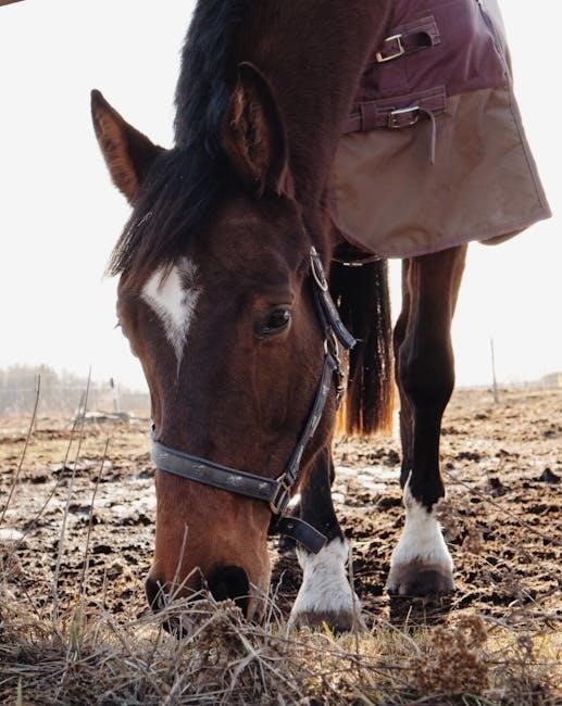 Clipped or body-clipped horses require careful blanketing due to their reduced natural insulation. These horses lose their ability to regulate body temperature effectively, making them more sensitive to cold. Lightweight blankets are often necessary even in milder temperatures, such as 40°F to 50°F, to prevent chilling. As temperatures drop below 30°F, heavier blankets may be required to maintain warmth. Proper fit is crucial to avoid discomfort or injury. Regular monitoring of the horse’s condition is essential, especially during extreme cold snaps, to ensure they are not too hot or cold. Expert recommendations suggest blanketing clipped horses whenever temperatures fall below 40°F to prevent chilling. Always ensure the blanket fits well and adjust based on the horse’s individual needs and environmental conditions.
